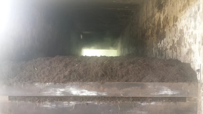 A empresa possui uma máquina de compostagem capaz de virar e misturar uma leira de composto de 70 metros em 40 minutos!!