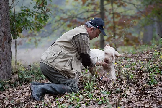 O caçador de trufa entra na mata e normalmente usa um cão treinado para farejar o lugar onde o alimento se esconde. São necessários vários funcionários para se conseguir uma quantidade suficiente para a distribuição. A Urbani conta com 18 mil pessoas trabalhando em todo território italiano.